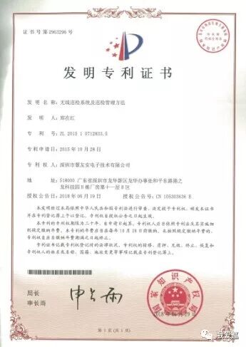 开创了知识产权工作的全新局面,引领了行业发展。本次申请的《无线巡检系统及其巡检管理方法》发明专利,最早从2015年5月立项,到2018年6月19日取得授权证书,历时3年。