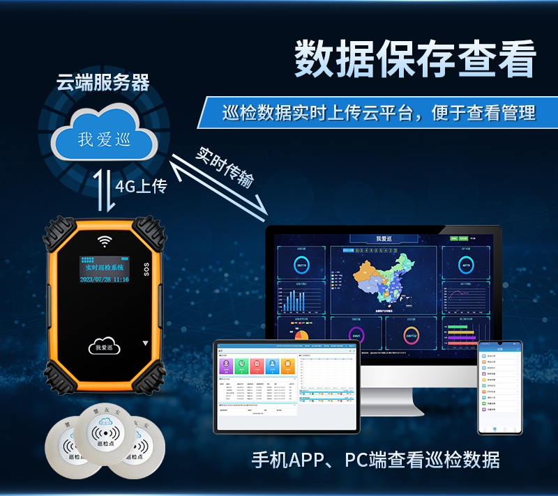 但随着物联网技术的迅猛发展,无线传输、实时定位等功能被广泛应用到巡更设备中。如今的巡更系统,巡检人员手持设备不仅能自动感应信息点,还能通过无线网络将数据实时上传至管理平台,管理者可在办公室内就能清晰看到巡检人员的位置与工作进度。