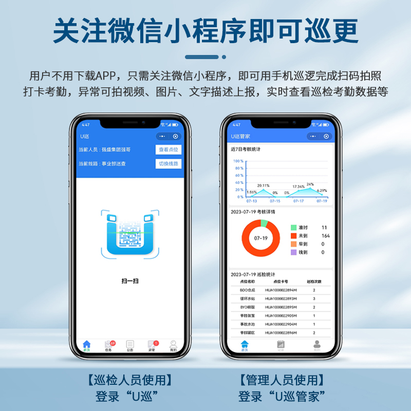以往传统巡检方式存在人为代签、事后补签等漏洞,而动态二维码让每次扫码都具有唯一性与时效性,确保了巡检数据的真实性。员工只需通过手机,无论是在微信公众号还是手机 app 上操作,即可轻松完成扫码打卡。同时,在巡逻过程中,一旦发现问题,员工能够迅速上报巡逻情况和现场图像。这些图像和信息将直接同步至管理后台,为后续的问题分析与处理提供了直观且准确的依据。